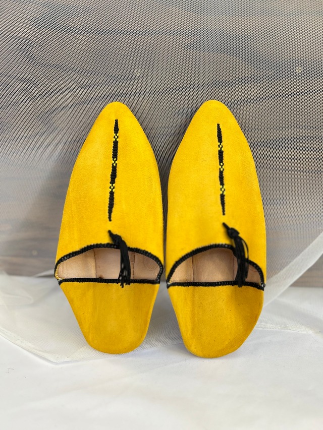 【ケタール..オリジナル】バブーシュ(外履き用) SALE¥13200→¥6000 モロッコ現地に行き 生地、デザイン全てオリジナルで作りました。 外履きバブーシュは 裏が高級なラクダ革を使用しており、 丈夫になっております。 外履きはもちろん、おうちのスリッパ代わりにされる方もいらっしゃいます。
